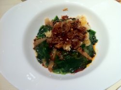 同好朋友第一次去这家法国餐厅,布局除了桌子相隔的地方太窄,其他的还好!烟三文鱼沙律不错,酱汁搭配得很好!PIZZA很特别,和平常的不一样,很薄很脆,上来的时候闻到很香,吃进嘴里满口芝士浓香和洋葱的脆甜加上脆脆的饼底,感觉不错,可是吃了两块就觉得很腻。朋友点了一个番茄汤,她说很不好,尝了一口就叫服务员收走了,我们两个人357元埋单…查看更多