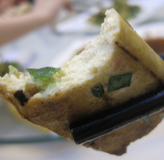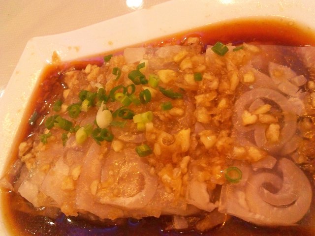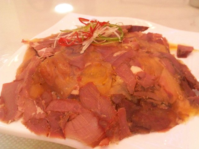 脑海里一直没有河南菜的影像,最多的就是烩面吧。我坐在车上,看着窗外磅礴大雨。这次可以说是风雨无助。来到许昌包房。今天来的大都是MM。大家都等了很久。不一会,菜上来了。垛子牛肉、五香豆干。哦!这是豫菜吗?接着很快菜全上齐啦。水晶皮冻、八宝豪辣椒、小葱煎豆腐、开封香煎凉粉、酸汤绿豆面丸子、牡丹富贵鸡、糖醋软熘鲤鱼焙面等等。小葱煎豆腐的豆腐非常不错,正宗的北方老豆腐,全场MM都喜欢的菜。听着我们唯一的河南人说,这个开封香煎凉粉。在河南家里,在大街满大街都是。品尝了全部的菜。我觉得河南菜有个特别的味道。和河南的朋友一问,好几道菜里面都有河南人做菜必须用到的一种香料。整桌菜最贵的就是牡丹富贵鸡,这个鸡啊。不得,不说。。。。和广东的鸡味道真的无法比。其中必须一提的就有就是糖醋软熘鲤鱼焙面,鱼上的面真的做的非常细,糖醋也非常美味。可惜糖醋的味道完全盖过了鱼的味道。大伙对它的评价非常差。后来我们翻菜单,才知道这条鱼获得过大奖。其中一个MM,竟然吃出了小时候的味道。难道这就是地道的河南味道吗?…查看更多