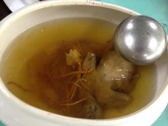 中山大鸽饭位于中山大道BRT沿线,坐落系东圃客运站对面站。店铺面积好大,都系用铁皮搭成的一层大排档风格,比较简陋。地理位置不算很好,中午时分帮衬的人不算很多,外面一大片停车位都没什么车子。鸽仔系滋阴美食,价格中等,制作美食味美经济。某网站用¥188团购既价值¥410中山大鸽饭六人餐,包括:虫草花炖老鸽汤;红烧乳鸽;姜葱焗水库大鱼;手撕拆骨猪手;锅仔酸菜肥牛;台山菜花炒咸肉;鱼宝啫蛋;韭菜煮鸽血;菜心炒鸽什;乳鸽焗饭;茶位¥2*6份。首先同店员报上团购既代码,静待菜品上桌,服务员服务态度很一般,整个吃饭过程除了上菜和点菜都没来招呼过。【鸽仔主题美食】虫草花炖老鸽汤¥78:一大盅,汤水确实太多、但鸽子和虫草花既量不够,喝落味道唔够浓,似淡口既三滚汤。推荐--红烧乳鸽¥75:店家既镇店美食,一碟四只红烧乳鸽,鸽身金黄香脆、而且肉质比较老身,好有味道。韭菜煮鸽血¥18:由于喜欢吃血的人不多,基本这碟鸽血就这样浪费了,没品尝。菜心炒鸽什¥28:猪油炒起既菜心同鸽子内脏一起炒,充分运用乳鸽每一部位制作美食。推荐--乳鸽焗饭¥42:用电饭锅煮既,上台既时候就系成煲来,个人觉得,如果用瓦锅,可能更香。由于饭里面放左唔少鸽子肉,吃落都几特别架。【水库鱼主题美食】姜葱焗水库大鱼¥38:以水库鱼既鱼腩为主要食材烹制,没有太多既调料,只有姜葱搭配,吃落无咩鱼腥味,而且煎过再炆好香口。鱼宝啫蛋¥22:薄薄既一层蛋浆覆盖着鱼的内脏,在铁板上啫的香口嫩滑,香嫩可口。【其他】推荐--手撕拆骨猪手¥30元:猪手拆骨撕碎,再以手撕鸡粉一起捞匀上台,简单得来清淡,完全唔会感觉到猪手既肥腻口感。台山菜花炒咸肉¥35:很下饭的一道菜,五花肉同菜花一起炒,肉比较咸且量稍微少了点,菜花还是满爽口的。锅仔酸菜肥牛¥32:虽然好大一锅,且热着上来的,但肥牛太肥,酸菜唔够酸,做出来口感不炸的。团购餐分量比较足,整体味道适合广州人口味,味道中等吧,以鸽子为主题烹饪比较有自己特色,喜欢的不防团购试试。…查看更多