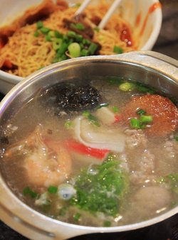 蜀风小厨他家开在江湾镇,这边居民区很多的,生意还是很好的,我们点了一份拌面搭配一份砂锅,拌面放了肉酱,很香,有弹性,砂锅里面有虾、鱼丸、木耳、番茄等,挺鲜美的,很好吃。…查看更多