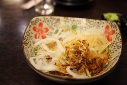 染山他家环境还是比较一般的,好在味道不错,寿司品种很多,他家的盘子和器皿都超级好看的,看看就很有食欲,木鱼花很妖娆,很薄,还有白色的貌似是萝卜丝,奇怪的是没有生萝卜的涩味,挺好的。…查看更多