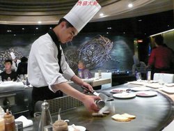 水木锦堂 (朝外店),地址位于朝阳区关东店28号宫霄酒店一层在酒店的一层,一边整个是他家的,面积很大很宽敞,有包间有散座,包间满了只看了一下,里边有两只大铁板台,每太似乎都坐了10余人挺挤的大堂的散座还比较宽松,叫服务员加菜也方便,服务还是不错的,有服务意识,唯一不足是换餐盘有点慢喜欢铁板烧的原因之一是喜欢铁板师傅那让人眼花缭乱的技艺,其次才是菜品,菜品品种非常多,肉食控当然要多多点肉了刺身拼盘,三纹鱼、北极贝、章鱼等,特别新鲜,块切的够厚,吃着过瘾小羊排,感觉稍稍一煎就成熟了,特别嫩菲力牛排,大块牛排,煎五成熟分切成小块整整齐齐,带点血丝,口感最棒,鲜嫩无比芝士焗生蚝,芝士很好的额衬托了生蚝的肥美香煎深海鳕鱼,火候掌握的恰倒好处,火小了鱼腥火大了鱼肉易碎铁板大虾,个头够大够新鲜,虾肉紧实弹牙元宝虾球,略带甜口,虾选的很好,虾肉几乎是透明的铁板鹅肝,喜欢煎的老一点的,虽然口感略变差,烹白葡萄酒很好的祛除腥气鹅肝蒸蛋,好大的一块鹅肝,还配了鱼籽每位178元,绝对对得起这个价格,值得再去…查看更多