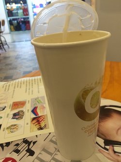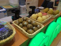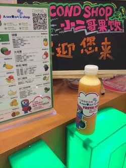这家店在解放碑英利的B1楼下了扶梯就是了店里超级多的水果这家是鲜榨的水果汁选了需要的水果汁之后老板就拿着切好的水果在榨汁机里面哗哗哗的榨水果汁了我看了一下需要大半个哈密瓜和芒果才榨出了这么一大瓶水果汁真的很大一瓶哦15元就喝到了新鲜的水果汁~很棒!…查看更多