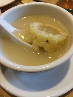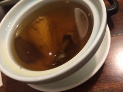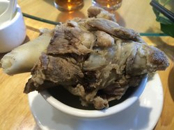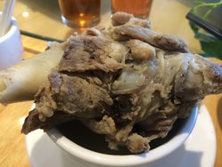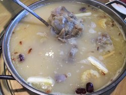 同事请客吃饭本来以为就是随便吃点什么的结果说约在河边不开车的话就坐公交车在泰吉滨江下车然后过马路往回走50米就看到这家店了还好我们同事提前打电话订了座位我们去的时候是6点半大堂里面孤零零的剩了一桌那一桌就是我们预定了的外面坝子里还坐了几个人在等位生意这么好因为快到的时候打电话说了一下我们坐下来没几分钟骨肉汤就端上来了还送了水果这个天来点西瓜是真解渴中锅的骨头汤分量太足了本来以为4个人中锅差不多的结果4个人都吃撑了还没吃完应该定小锅的每人都啃了这么大一个骨头碗都装不下上面全是肉肉骨头汤味道也很不错里面还加了玉米我们四个人吃下来没用到150太划算了!!!!!!…查看更多