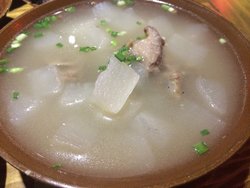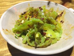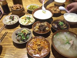 这家菜馆居然开在火锅馆的里面很不可思议然后觉得装修得像皇宫一样凉拌猪耳朵绵软爽口凉拌豆芽酸辣爽口凉拌豆皮很棒还有凉拌的苦瓜脆嫩爽口甜中带苦红烧肥肠真的是又耙又糯十分诱人烧白的味道也很棒下面的水盐菜很下饭红烧牛肉非常入味萝卜水嫩化渣清淡的萝卜汤里面还有肉非常好喝这一桌子下来才60块简直超值得不能再超值…查看更多