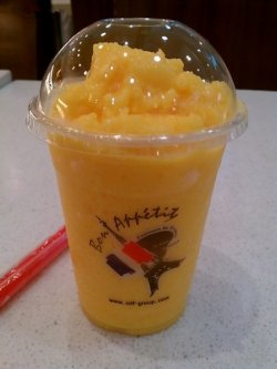 蛮喜欢他家的,店里的风格类似85度C的。有人说他家就是山寨85度C的。里面的面包,蛋糕什么都跟85度C的一样。不过价格比85度C的便宜。所以买的人还是很多的呢。他家的芒果沙冰,8元。味道真心一般。很淡。…查看更多