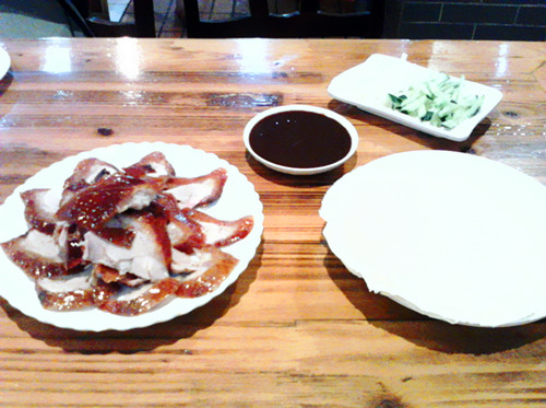 周五去嬉戏谷玩,回来时在大行宫下的,就来这边吃烤鸭了。店里有专门的烤鸭炉,看着挺正规的,和朋友两个人点了半分烤鸭,加葱饼,鸭架做椒盐的,还点了一份锅巴和一份凉皮。味道都很不错,鸭子皮特脆!锅巴浇了肉汁也很好吃,但是时间长就软掉了。凉皮味道很不错,就是有点重。…Read More