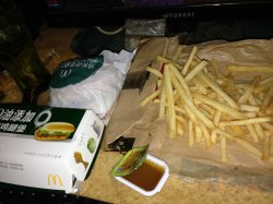 这间麦当劳可以说是很久历史了看着它装修了几次平时生意都非常好的因为附近多写字楼又是批发市场前晚在家里半夜感觉肚子饿因为已经是凌晨时分了很多餐厅已经停止送餐服务我第一时间想起了麦当劳麦当劳送餐速度比较快半小时内就送到了我挺喜欢现在新出那个培根双层牛堡麦当劳的牛肉煎得很好不会很韧味道调制的刚刚好培根味道较咸可惜薯条送到来的时候已经有小小淋左最喜欢麦当劳的麦乐鸡炸得很脆很香搭配甜酸酱味道很好…查看更多