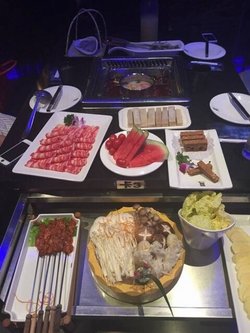 去上上谦之前做足了功课呀,首先先订位,然后再团购代金券,然后去的时候不用排队直接进店内点菜,感觉不错哦,环境灵的,有点嘻哈摇滚的感觉,非常时尚的火锅店,锅中锅很便宜啊,辣味还好了,没有传说中那么辣,嫩牛肉好吃的,招牌菜嘛,牛肉很嫩,也很容易烫熟的,菌菇拼盘喜欢金针菇和相关股,还有鸡茸菇,量很多很干净,可惜没见到老板本尊呀。…查看更多