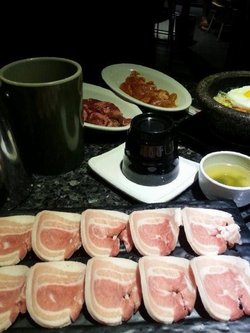 在汉拿山吃烤肉还蛮开心的,价格都很便宜啊,非常适合学生党的假期聚会,五花肉切片厚厚的一片,烤的时候却很容易烤熟,无论是肥肉还是瘦肉往生菜里一卷再蘸上特质的韩式辣酱别提有多好吃了,虽然南瓜粥开饭前送了一小碗,但是根本就吃不过瘾,后来买了一大盆,喝个痛快。…查看更多