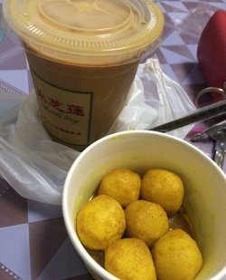 平时逛街经常会看到米芝莲门口排队的人很多,自己也蛮喜欢凑这个热闹的,然后看到很多人买咖喱鱼蛋的,也买了份吃吃,鱼蛋先装入碗里面然后再浇灌上咖喱汁的,味道很鲜浓,一份6个,个头蛮大的,面粉感不是很强烈,吃到嘴里有鱼肉的香味,吃一口就要蘸一口咖喱酱的,否则吃起来味道总像缺点什么。…查看更多