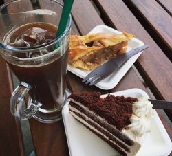 在派悦坊享受了一顿嗨皮的下午茶,本来想吃cupcake的,后来想想太迷你了,就买了大都会红丝绒蛋糕,味道还不错,口感特别软,吃进去有点像棉花糖的赶脚,很蓬松,奶油也不会很厚重,很喜欢他们家大杯的美美式冰咖啡,味道苦苦的,但是很香,是咖啡的味道。…查看更多