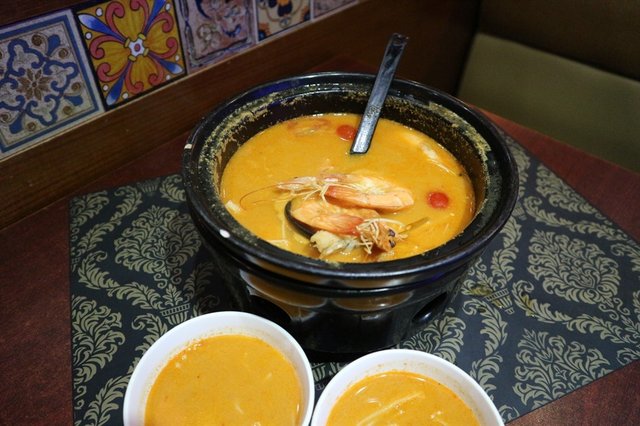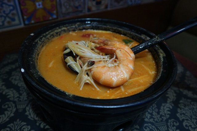 呢間泰子妃評價唔錯,啲人又話正宗又話乜乜,所以我都記低左要去試。餐廳位於寶能allcity商場,都幾近深圳灣口岸,該商場仲有喜茶、鮮芋仙等我好鐘意嘅食店。店內位置闊落,仲有室外座位,當然熱屎辣辣咪搞我。裝潢富泰式風,燈光稍暗。餐牌款式多,一般要食嘅泰菜都有,仲有意粉、披薩等,除左咖喱、海鮮類平少少,其他定價接近香港。另有兩款二人餐、兩款四人餐,人均RMB¥160-200。但入座時並未有供應套餐餐牌,係我地臨走見到隔離枱有先知有套餐,唔太老實。招牌冬蔭公湯 RMB¥68/小冬蔭公湯用瓦煲、蠟燭仔保溫,愈煲味道愈濃郁。有兩隻蝦、金菇、香茅等一般材料,份量適中,約分到4碗仔。酸辣都突出而平衡,蝦肉爽口。係全晚唯一我認為合格嘅菜式