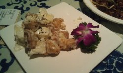 朋友一直想去,终于选了一天,需要提前预约的~进门要输入密码,还记得那天密码是56,在9个格子里拍打一下5、6的位置~~门就开了~~不过密码是天天换的~预约了才会有短信告知密码~一进去感觉很昏暗,朋友说这个很节约电啊~~哈哈哈上了2楼,安排了偏中间的位置,感觉周围都坐满了人,但是却很安静,大家都小声的说话。然后开始点菜~~笔筒色拉,比较简单,就4条黄瓜,4条胡萝卜,4条蔬菜,3条什么卷配一个色拉酱,要65,不知道为什么有人推荐。。= =真心不咋地。。。人间豆腐,也比较简单,味道还算可以~就是性价比也不高,52块就纸火锅的豆腐。。葱椒鸡排,还可以~就是量少啊。。4个人吃吃一下子就么了。。梅子排骨还行~情人面包汤不是很推荐,里面咖喱就一点点。。。。都是面包,还很硬,不好吃。。炒饭还可以。。总共吃了320~总的来说量比较少,环境还不错~桌子上有很多字谜,劈劈情操还好~要吃饱不太可能。。味道么一般般吧~没有惊艳的地方。…查看更多