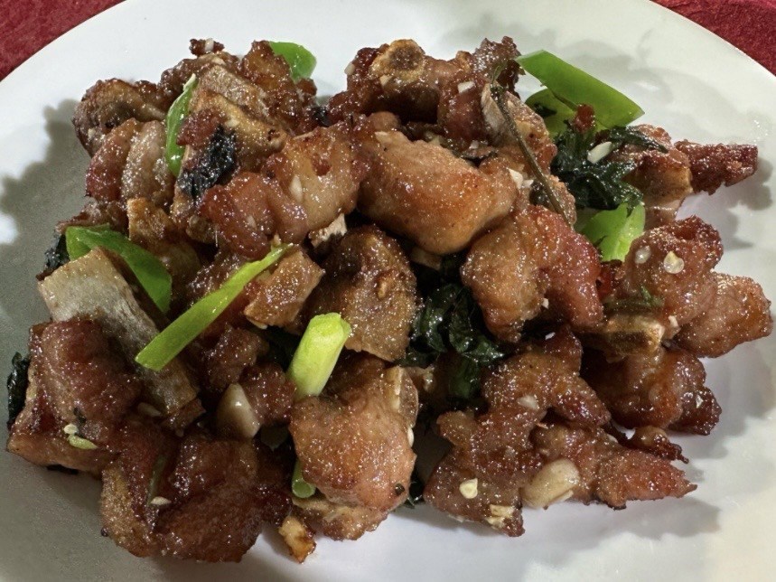 紫蘇和排骨的搭配,簡直是粵式燜菜的神仙組合!排骨先炸後燜,外皮帶著微微的焦香,肉質緊實不柴,吸飽了紫蘇的獨特香氣和醬汁的濃郁味道。紫蘇的清香完美中和了排骨的油膩,醬汁鹹香帶甜,拌米飯能直接炫兩碗!