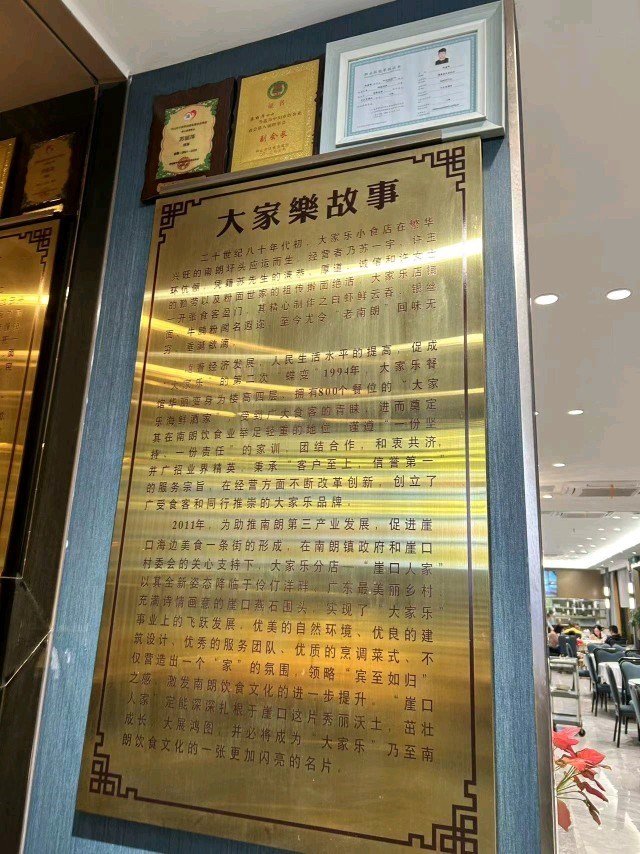 大家乐海鲜酒家 (南苑路) (中山) 网址: https://s.openrice.com/KtLSE00crz300 地址: 中山南朗街道南朗其他南苑路1号铺 电话: +86 0760-85522382