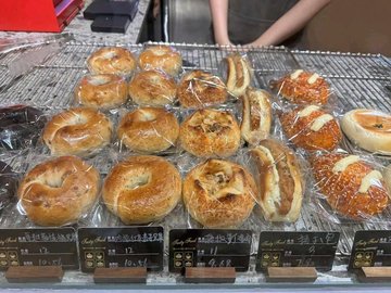 黑金蓝莓芝士贝果 / 油浸番茄芝士脆肠扭棒 / 开心果卷 / 黑松露蟹味恰巴塔 / 蔓越莓可颂 / 芝士贝果