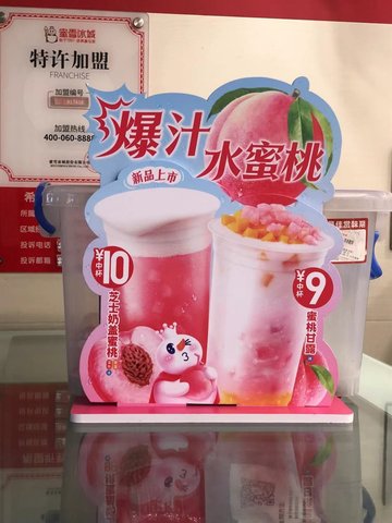 奥利奥雪王大圣代 / 蜜桃甘露 / 草莓摇摇奶昔 / 草莓椰奶露 / 草莓啵啵 / 草莓雪王大圣代
