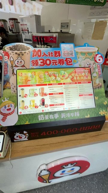 蜜桃四季春 / 奥利奥大圣代 / 满杯百香果 / 珍珠奶茶 / 芋圆葡萄 / 芋圆奶茶