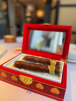 一进门,精雅脱俗的装修便让人心情舒畅,低调奢华的氛围非常适合聊天小聚。服务生的接待十分到位。我们二人点了一桌点心与主食,每一道都充满惊喜:「龙虾汤金鱼饺」🐠晶莹剔透的饺皮巧手捏成金鱼造型,栩栩如生。服务员在我们面前缓缓将热腾腾的龙虾汤倒入碗中,瞬间香气四溢。金鱼饺在澄黄的汤中徬佛游动起来,口感滑嫩,内馅鲜美,与浓郁的龙虾汤底是绝配。视觉与味觉的双重享受,必点!「金不换鲜虾雪茄春卷」🚬创意满分!长长的雪茄造型非常吸睛,绝对是打卡首选。外皮极其酥脆,咬下去「咔嚓」作响。内里是满满的鲜虾弹牙馅料,伴随一丝金不换(九层塔)的独特香气,解腻又提鲜。好吃又好拍!我们二人点选的菜式,几乎每一道都堪称艺术品:推荐菜式:「窝蛋黄牛肉石锅饭」必点主食!上桌滋滋作响,将蛋黄、嫩牛肉和饭搅匀,锅巴香脆,非常惹味。「XO酱萝卜糕」萝卜糕煎得外脆内软,XO酱真材实料,咸香鲜辣,提升整体风味。这里的食物不仅好吃,更是一场赏心悦目的美食艺术。…查看更多