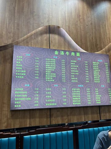 金汤牛肉面 / 牛肉拉面 / 孜然羊肉拌面 / 红烧牛肉面 / 牛肉炒刀削面 / 羊肉汤