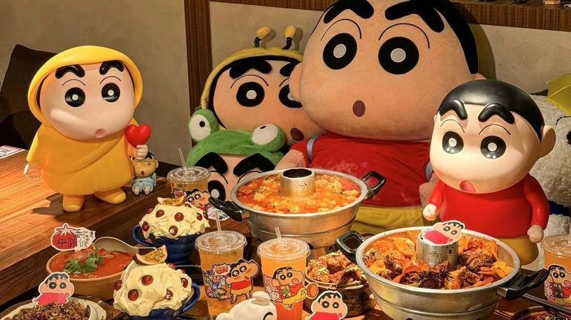餐廳到處佈滿蠟筆小新的卡通形象,菜品旁邊還搭配小新裝飾,溫馨舒適的環境還支持攜帶寵物一同就餐哦。「招牌豆花牛肉火鍋」裏軟嫩的豆花鋪在鍋底,吸收了湯底精華,入口即化;新鮮的牛肉片涮幾秒就熟,裹上麻醬或沙茶醬,風味十足;「萬萬小酥肉」選用後腿肉切成长条,裹上薄麵糊炸至金黃,外皮酥脆不油膩,內裏肉質緊實有彈性,鹹香適中,直接吃或涮火鍋都很美味;「小新pp布蕾」口感綿密細膩如云朵,甜度剛好不膩,帶著淡淡的奶香味,在店内就餐還有機會獲得蠟筆小新主題盲盒哦~