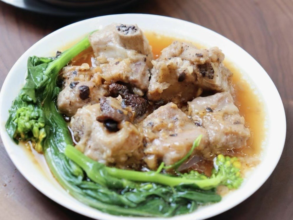 燉得酥軟的排骨裹著新會陳皮的果香,肉質緊實不柴,醬汁滲透進粒粒分明的米飯裡,每一口都香氣撲鼻。陳皮的清香中和了排骨的油膩,配上青菜點綴,營養均衡又下飯。