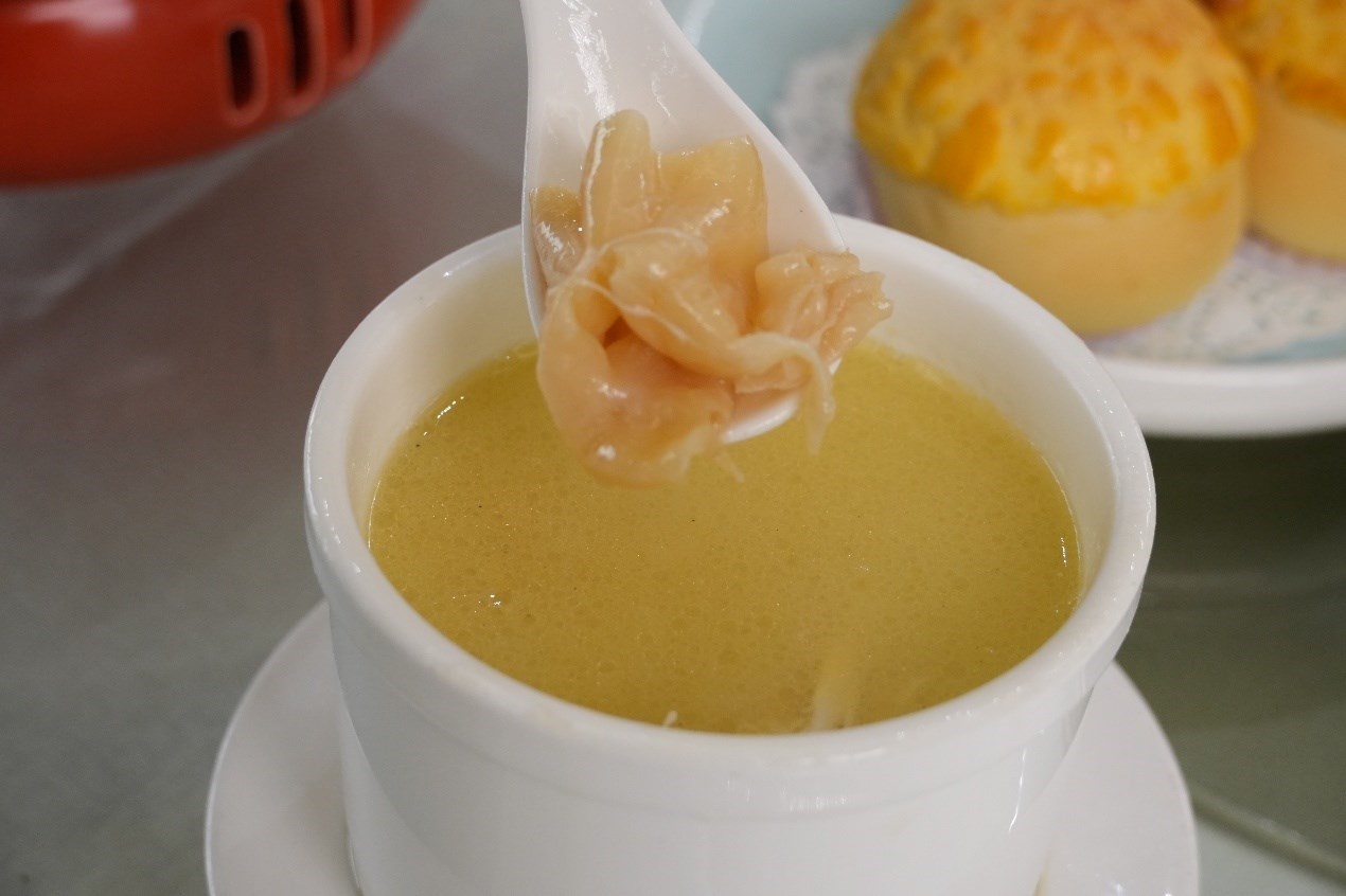 ②花膠老雞湯:三年老母雞+深海花膠文火慢燉6小時,湯色金黃濃稠,喝起來溫潤滋補,女生必點養顏神器;
