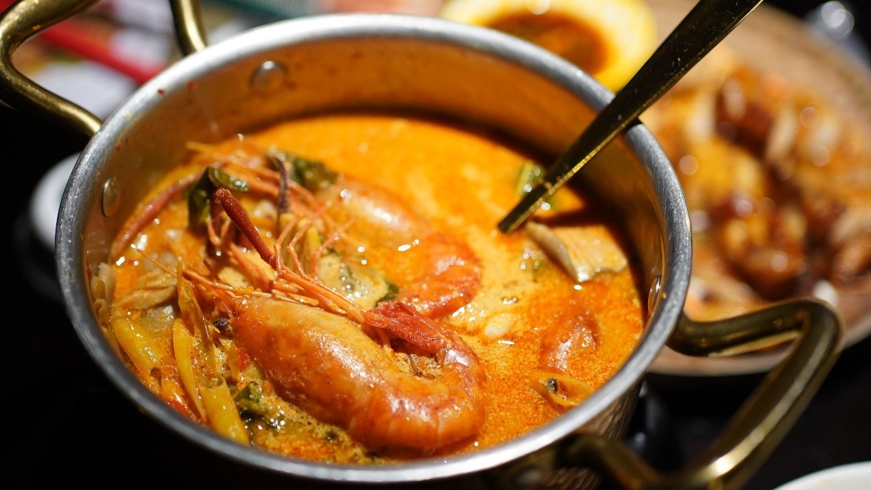 ③冬陰功湯:酸辣鮮香層層遞進,香料味十足卻不嗆喉,蝦的鮮甜與檸檬葉、香茅的香氣完美融合,一口穿越泰國街頭;