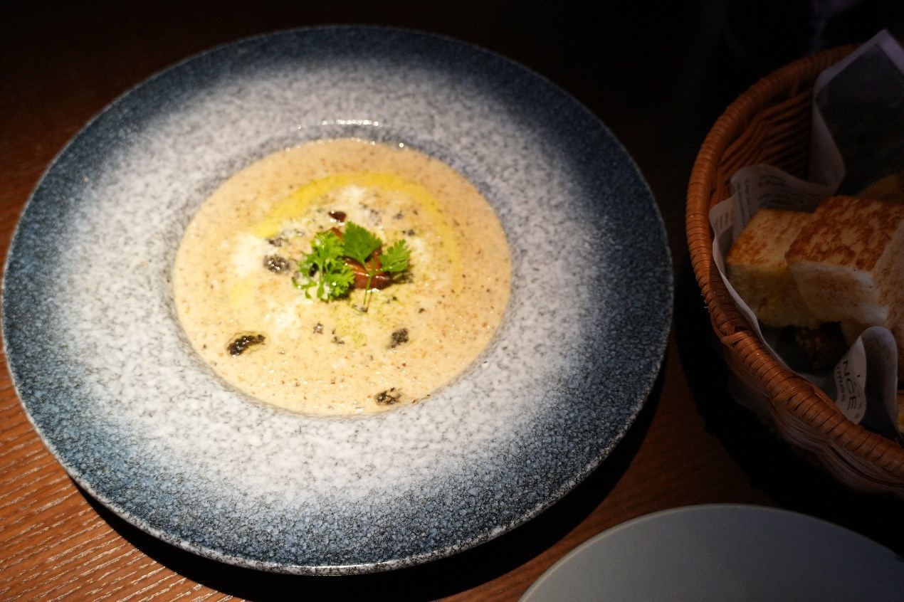 ③黑松露蘑菇湯:香氣濃郁醇厚,口感綿密絲滑,搭配餐前麵包,味蕾直接被喚醒!