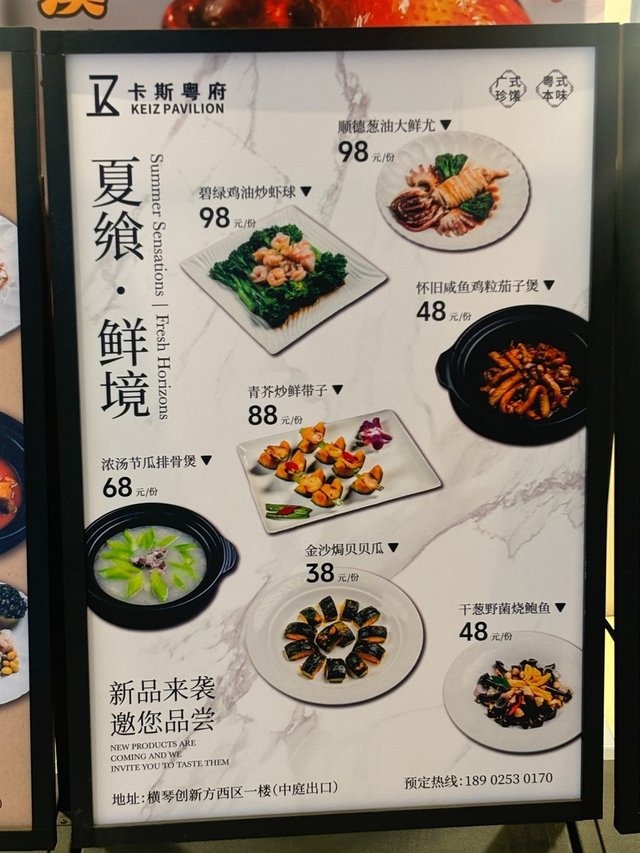 卡斯粤府KEIZPAVILION (创新方) (珠海) 网址: https://s.openrice.com/KtLS2G0vsyzG0 地址: 珠海香洲区横琴天羽道111号创新方1F层153号铺 电话: +86 18902530170