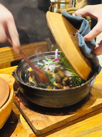 招牌腊味煲仔饭 / 三酱啫肠粉 / 啫啫走地鸡煲 / 虾酱啫通菜梗 / 茅根竹蔗水 / 牛肉窝蛋煲仔饭