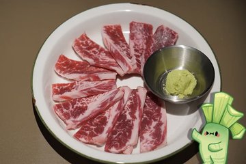 山葵肥牛 / 山葵叶五花肉 / 鸡蛋拌饭 / 辣酱蟹 / 烤凤梨 / 牛肋条