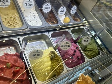 榴莲冰激凌 / 榛子巧克力冰淇淋 / 香草冰淇淋 / 森林水果冰淇淋 / 海盐冰淇淋 / 薄荷冰淇淋