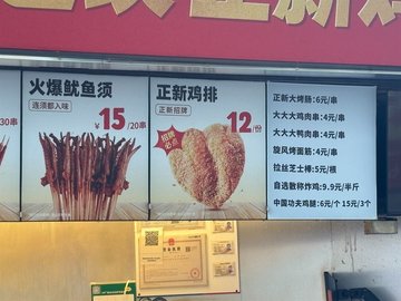 正新鸡排 / 鸡肉串 / 小牛肉 / 鸭肉串 / 小鱿鱼串 / 香辣鸡排烤肠乳茶