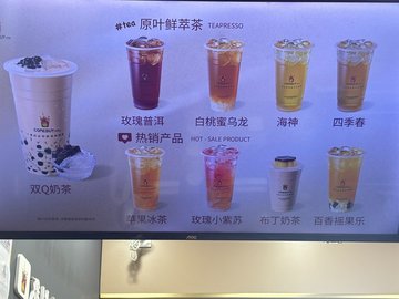海神奶茶 / 玫瑰普洱奶茶 / 玫瑰普洱纯茶 / 仙草冻奶茶 / 百香冰茶 / 双Q奶茶