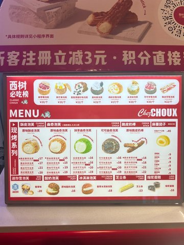 招牌泡芙 / 原味经典香草泡芙 / 酥皮榴莲泡芙 / 脆皮香草奶棒 / 麻薯团子 / 巧克力香草泡芙