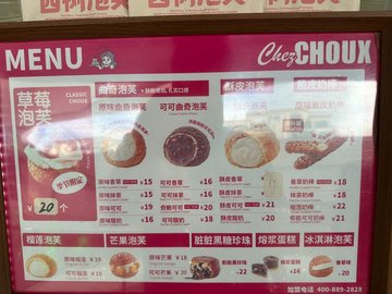 巧克力脆皮抹茶泡芙 / 酥皮抹茶泡芙 / 千层香草泡芙 / 榴莲泡芙 / 曲奇酸奶泡芙 / 脆皮抹茶奶棒