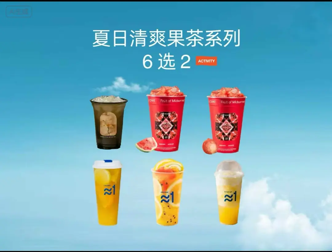 红通通大西瓜+荔枝海盐冰茶+黄皮海盐冰茶+杨枝甘露+满杯鲜橙+超级水果茶