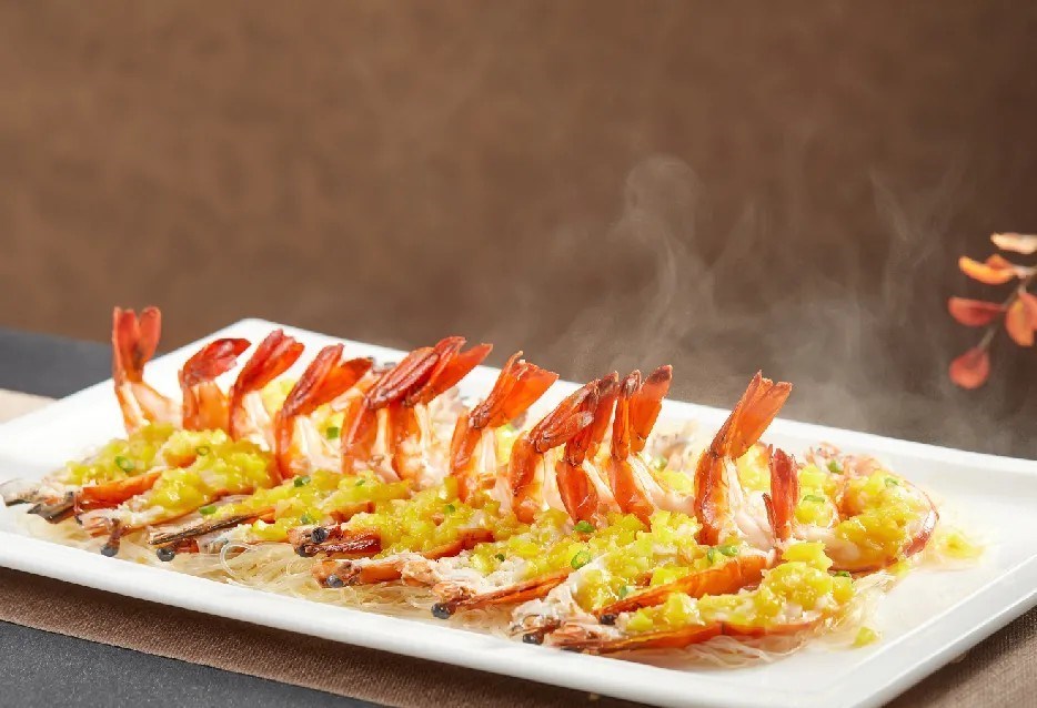 九節蝦選料講究,個大肉厚,鋪上自製黃椒醬清蒸,既保留蝦的本味又增添風味。黃椒的酸辣溫和不嗆口,恰好提升蝦的鮮甜,蝦肉緊實彈牙,蘸上盤底的醬汁,酸辣鮮甜層次豐富,連不吃辣的食客都愛不釋口。