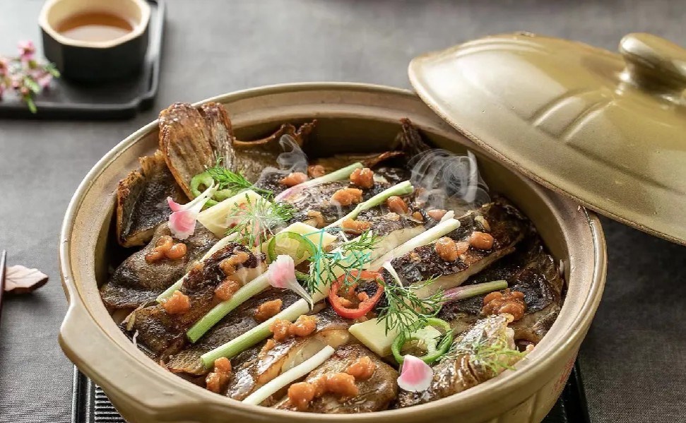 採用瓦撐慢焗工藝,魚皮經焗制後變得金黃酥脆,咬起來咔哧作響。魚肉吸飽了姜蒜、紹酒的濃郁香氣,保持著嫩滑多汁的口感,用筷子輕輕一夾便碎成細嫩魚片,鮮味十足且沒有魚腥味,大人小孩都適合。