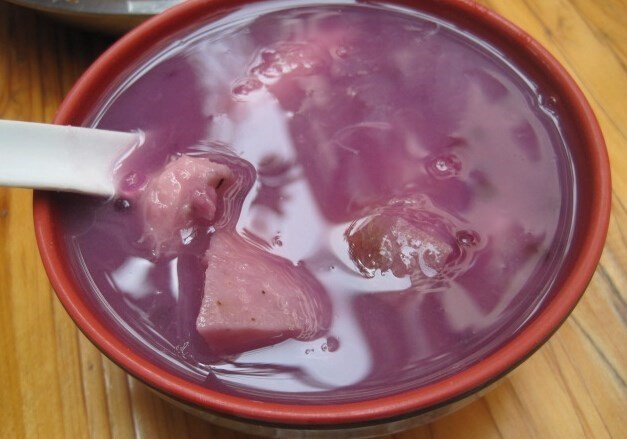 西米露4元一份,我要了一份番薯香芋西米露,有紫薯的颜色,但是却吃不到紫薯,应该是融在糖水里面了,大粒的西米都已经变成了紫色,煞是好看,香芋即香又粉,吃了一碗就想再来一碗