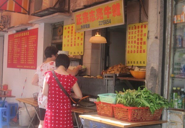 那晚我们几人在咖啡店喝饮品聊天,店里的杂志也拿来翻了翻,发现其中有一篇介绍东莞十大美食的文章,鱼丸、芝士蛋糕、煲仔饭等十大美食我已经吃之七八,而这个志亮很是吸引我的眼球,闺蜜说,这就是她一直向我提到的牛杂店。第二天是周日,我可一定要去吃牛杂了。