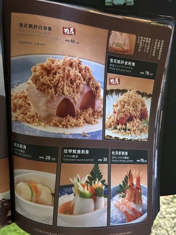 精選刺身拼盤 / 現煎鵝肝大滿足壽司 / 特選壽司拼盤 / 鐵板牛肉粒 / 三文魚刺身 / 大蝦天婦羅