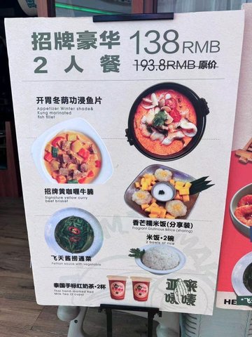 招牌黃咖喱牛腩(拌飯一流) / 香芒糯米飯(泰國甜品) / 冬蔭功大蝦湯粉 / 炭燒豬頸肉(大口吃肉) / 飛天醬拌通菜 / 開胃冬蔭功浸魚片