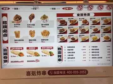 喜姐炸串 (天虹購物中心) (佛山) 網址: https://s.openrice.com/KtbS4m0NULzW0 地址: 佛山禪城區石灣魁奇二路10號天虹購物中心B1層B1001-3號鋪 電話: +86 18125751168