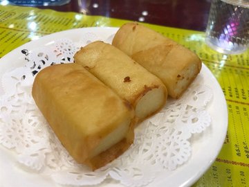 顺德的双皮奶名扬天下,来佛山一定要试试。双皮奶:上面厚厚的一层奶皮,奶香十足,拨开奶皮,里面的奶软滑细腻,让人说不出的香甜,惊讶于牛奶凝固是这样软滑。感觉吃多了会腻,就和朋友分一碗吃,其实吃完有点还想吃的感觉。煎饺:以为是平时小吃店那种煎饺,上来之后非常惊讶,因为煎饺居然外皮是金黄色的,而且个头很大,煎的油汪汪的,让人看着就有食欲。里面的馅料十足,是韭菜肉馅的,很好奇它的外皮是怎么处理的,是在面里加了鸡蛋吗?很好吃,但是略油哦。为了怕吃的太油腻,店家还配了辣酱,辣酱很正宗,微咸微辣,应该是自己调制的。芝麻拉皮:加了黑芝麻做的拉皮外观有点像肠粉,其实应该是用糯米做的,有点像潮汕的黑果果。味道芝麻香很浓,不是很甜,有点干,吃了几口会腻,觉得如果淋上些椰汁、牛奶或炼奶会比较好。店里很多人,要等位,服务员态度非常好,热情,上菜速度比较快,品种很多,甜品,冷饮,雪糕,但是就是价格,呵呵,有点贵。不过也算物有所值。