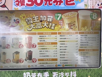 蜜桃四季春 / 港式楊枝甘露 / 芝士奶蓋綠茶 / 冰鮮檸檬汁 / 高山四季春 / 珍珠奶茶