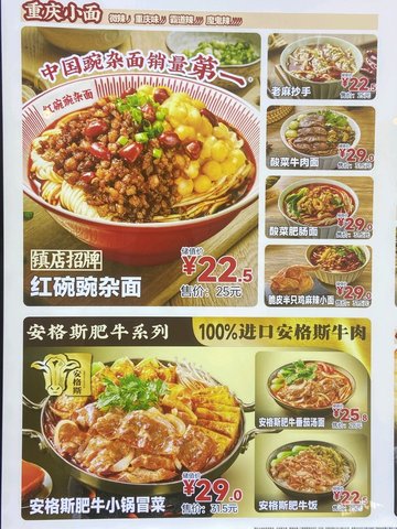 蔥酥骨湯抄手 / 麻辣小麵 / 酸菜鹵肉麵 / 紅碗碗雜麵 / 川式紅燒牛肉麵 / 金碗酸辣粉
