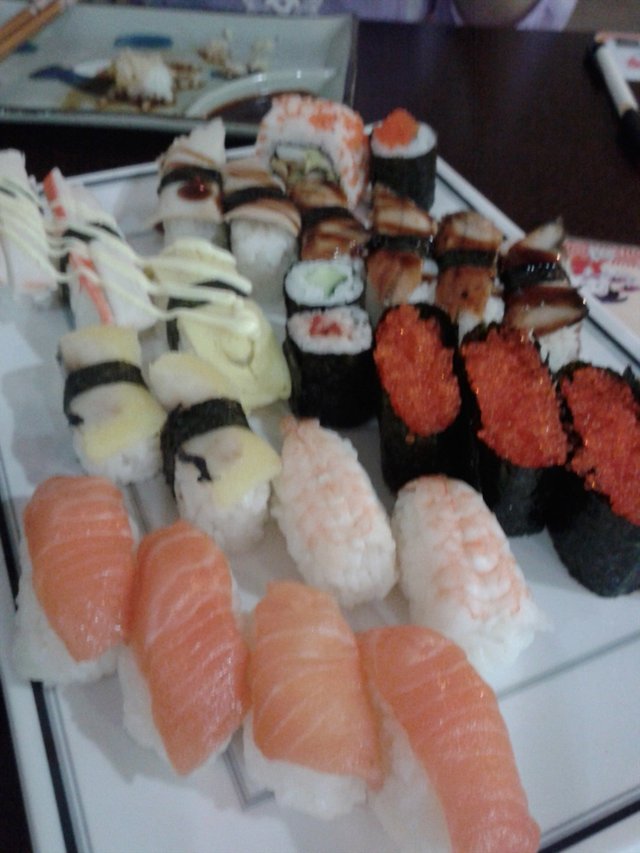 三文鱼啊、虾啊、鳗鱼寿司很一般,肉超薄,饭很多,三文鱼不够新鲜。蟹柳和与子好吃。